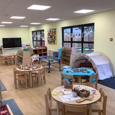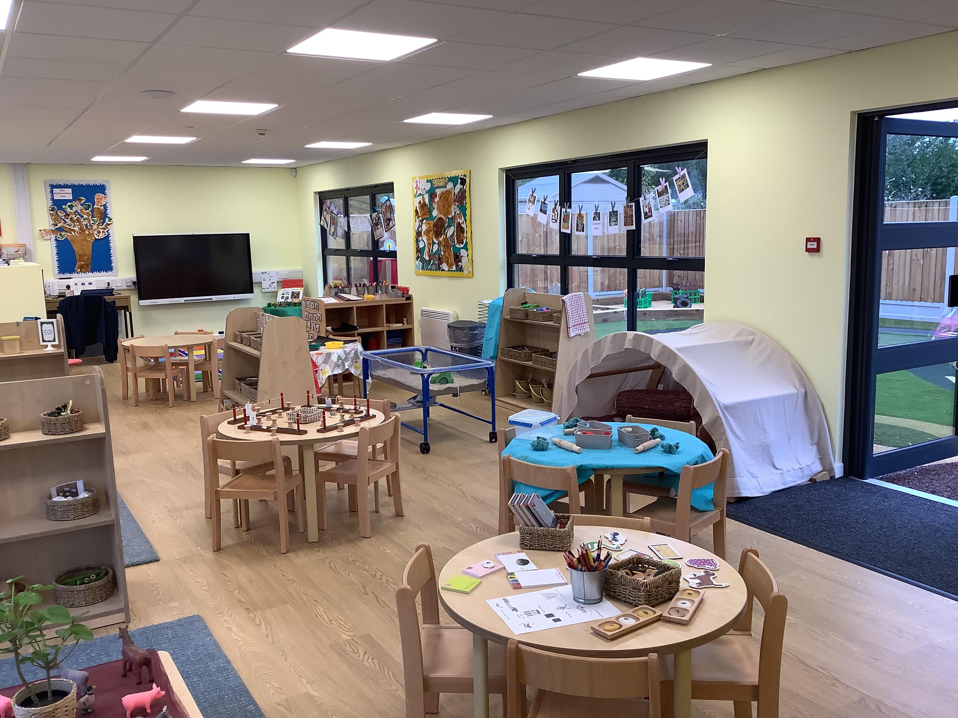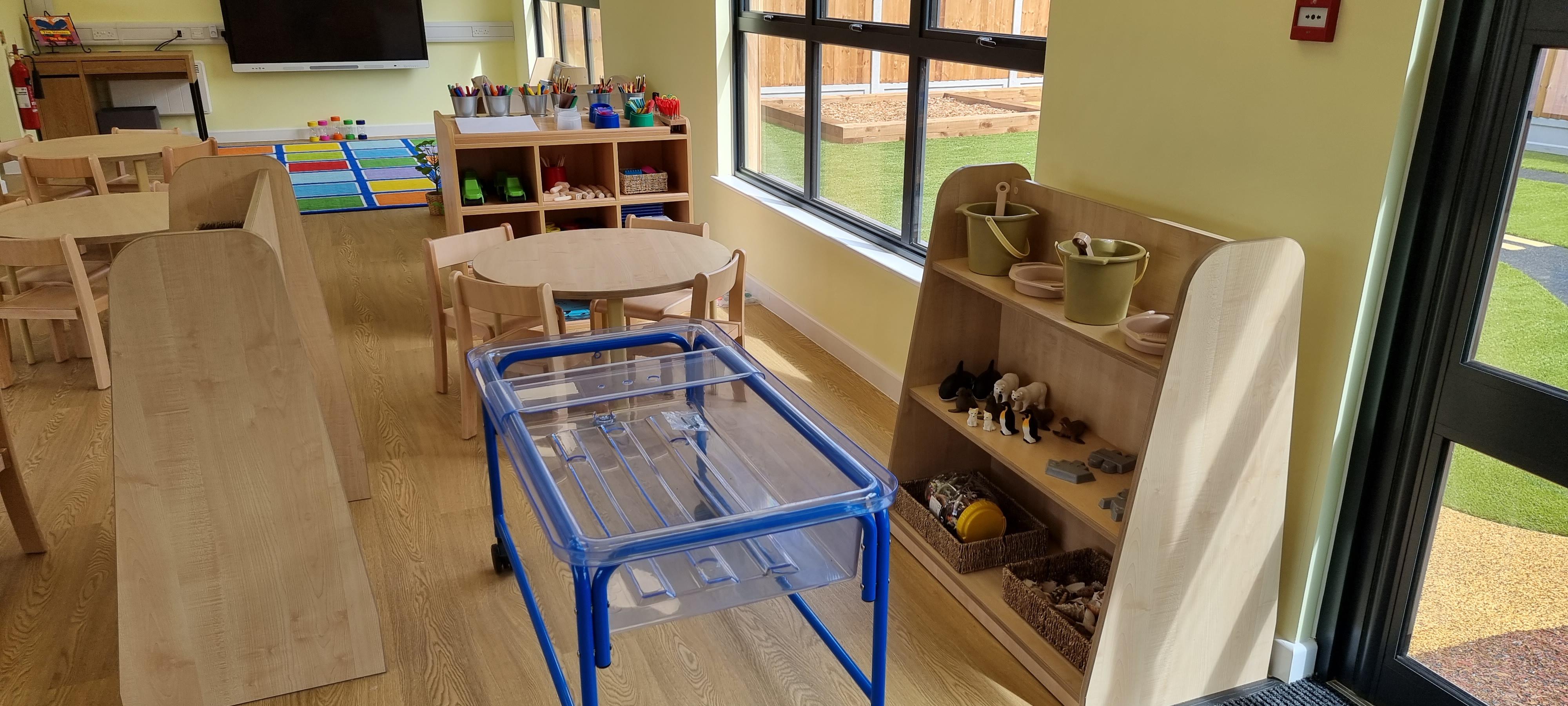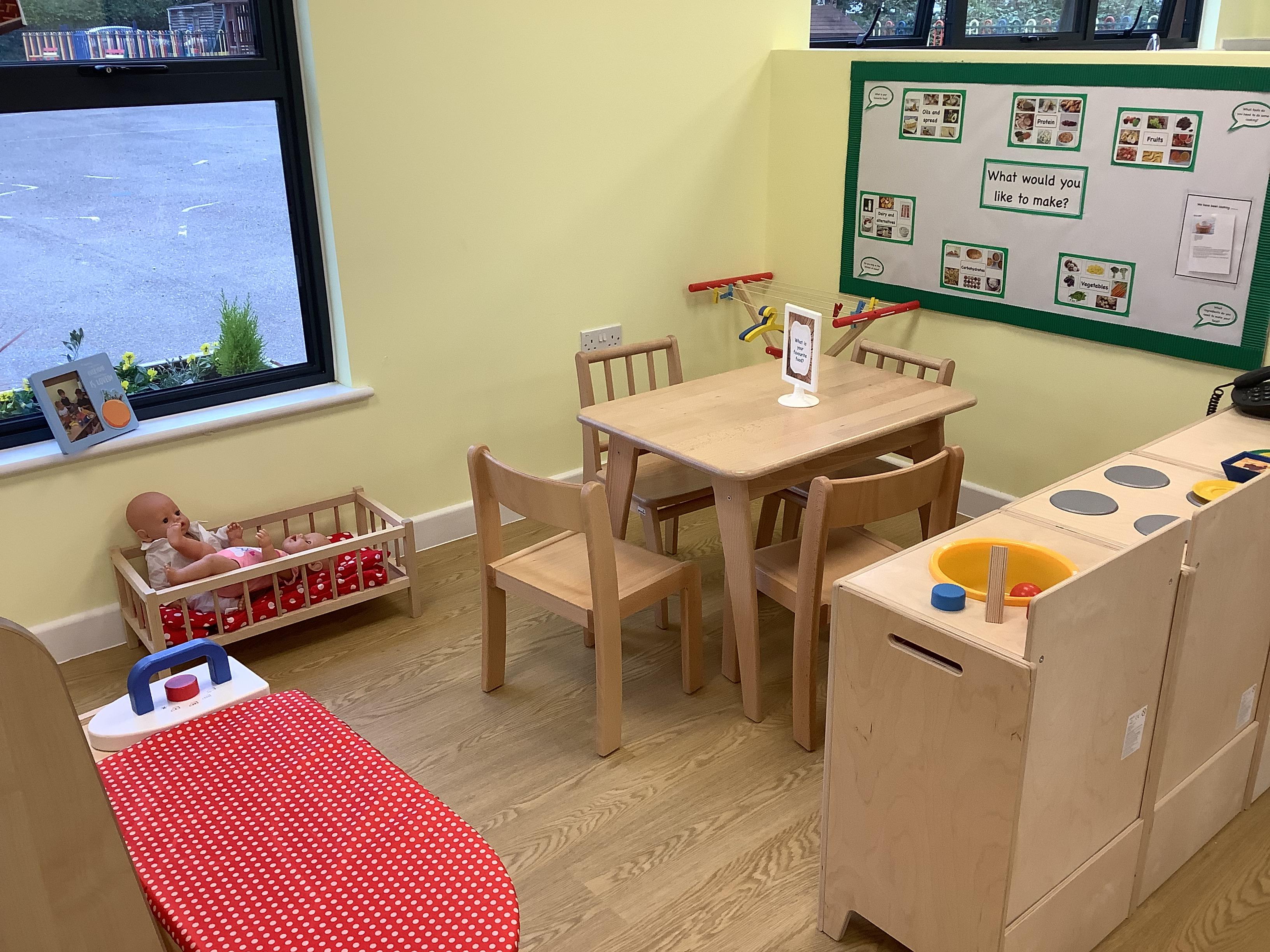 The nursery is a free-flow setting where children can access the inside and outside areas. There are many different areas to explore both inside and outside including:
